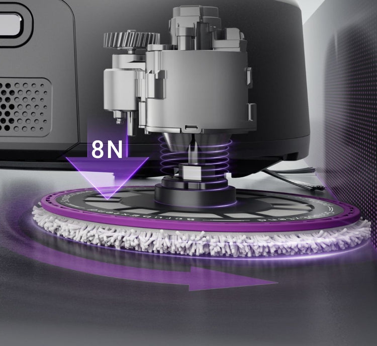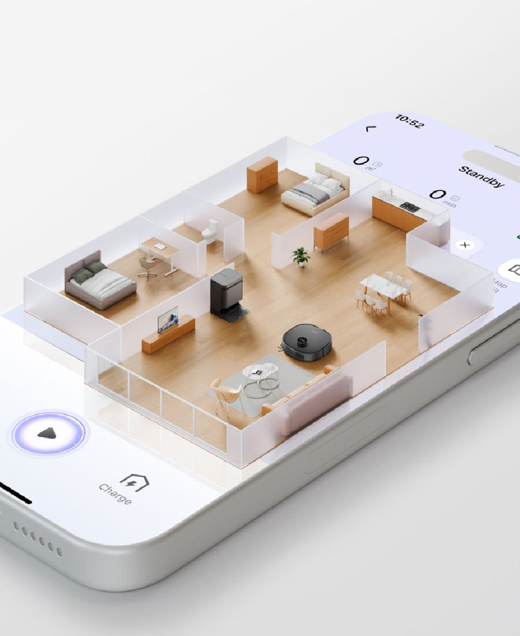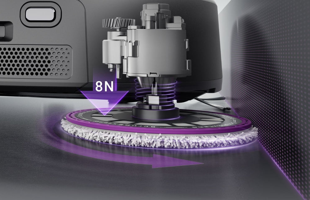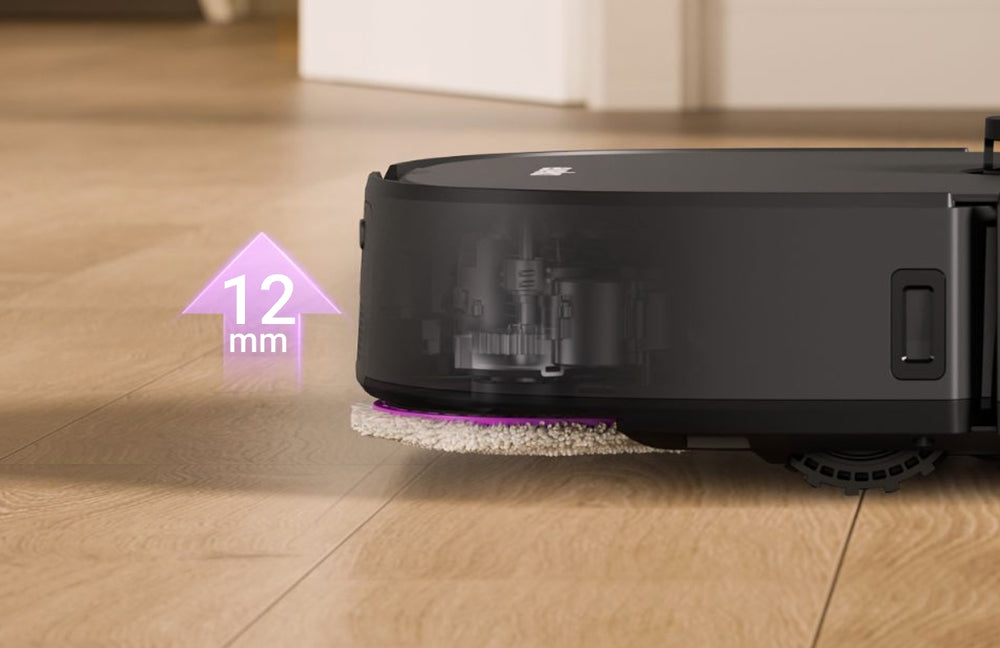 Cuando detecta áreas de difícil acceso como esquinas y patas de mesa, el J15 Evo Ultra extiende automáticamente su mopa para garantizar una limpieza exhaustiva en cada punto.