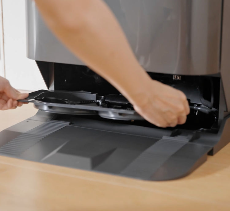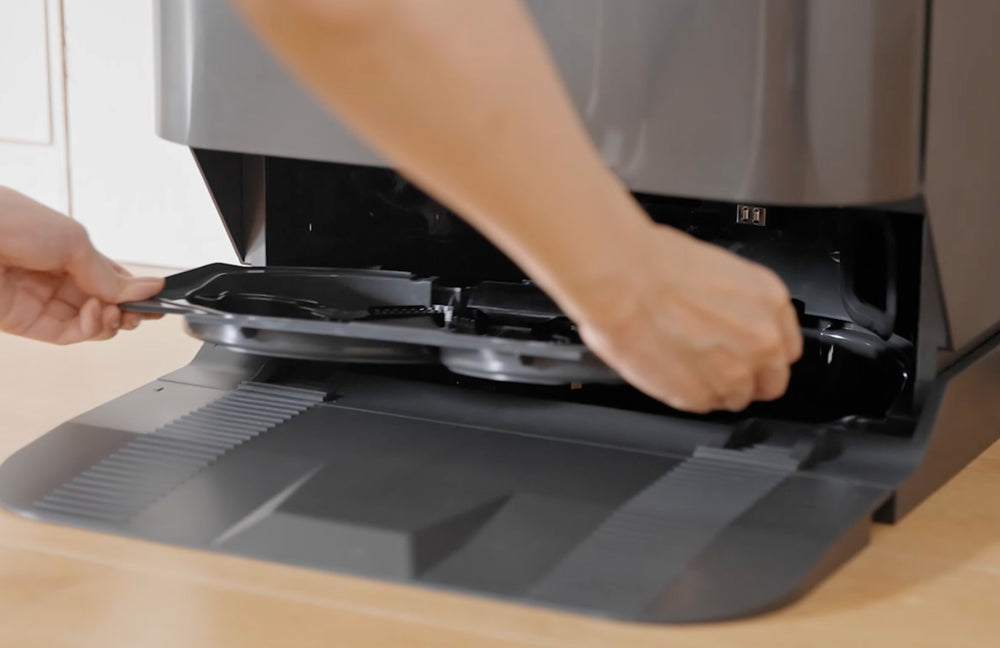 La bandeja de la estación base se desprende fácilmente, por lo que nunca tendrás que agacharte para limpiarla.