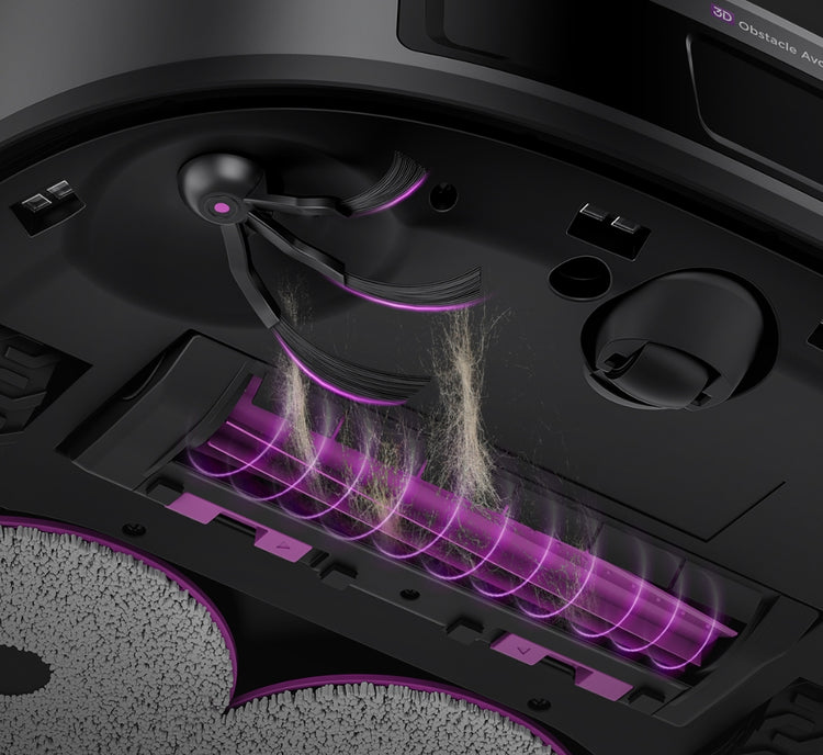 El cepillo rodillo en forma de V rediseñado del J15 Evo Ultra libera el pelo atrapado mientras gira, evitando enrollamientos y manteniendo un rendimiento constante. Es perfecto para hogares con mascotas.