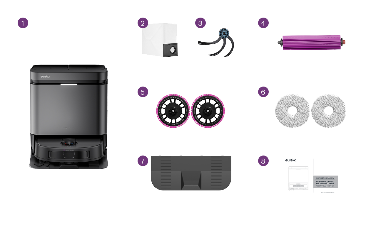 *'Aspiradora de trineo' aquí se refiere a la Eureka Apollo, con una potencia de succión nominal de 22.000 Pa. Los datos proporcionados se basan en pruebas realizadas por el laboratorio Eureka, y el rendimiento real puede variar. Los residuos domésticos probados incluyen granos de maíz, cereales y chips triturados.